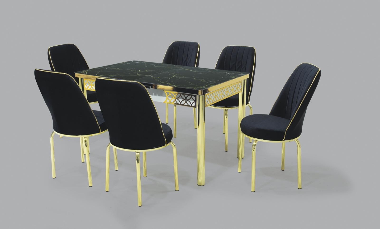 This Black and Gold Dining Table combines a modern Turkish design with practical extendable features. Its sleek black finish and gold detailing add a stylish touch to any dining area. The extendable function allows you to easily adjust the table size, making it perfect for both everyday meals and larger gatherings. A versatile and elegant choice for your home.
