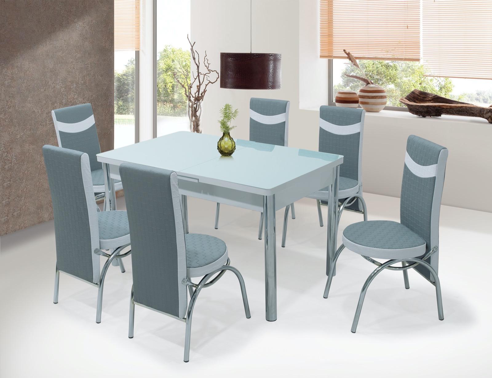 This grey and white dining table features a sleek top glass surface and a Turkish-inspired design. Its extendable function allows you to easily adjust the size, making it perfect for both everyday meals and larger gatherings. Combining style and practicality, it enhances your dining space with a modern touch.